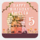 Chica de dibujo de flores de hadas de hadas de comercio de hadas Pegatinas de cumpleaños. Típico castillo puerta con flores y velas. Pegatinas de feliz cumpleaños personalizados para chicas. Añade tu nombre y edad.