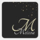 Pegatina Cuadrada Falso Monograma Relieve y Confeti Dorado