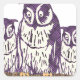 Pegatina Cuadrada Familia de búhos geométricos con estilo morado