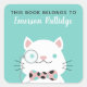 Pegatina turquesa con un elegante gato blanco vestido con un monóculo y corbata de arco. Este libro pertenece al pegatina. Agregue el nombre de su hijo en caligrafía blanca.