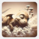 Pegatina Cuadrada Fantasía Bebé Bebé Dragón durmiendo