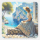 Pegatina Cuadrada Fantasía Cuidada Acuarela Mujeres Mar