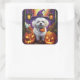 Pegatina Cuadrada Fantasma Bichon Frise Halloween Bruja Y Calabaza