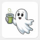 Pegatina Cuadrada Fantasma Halloween Fantasma Holding Matcha