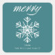 Este pegatina Navidad/Festividad presenta un copo de nieve bonito en un fondo azul y la palabra 'alegre' escrita con lujoso tipo de letra. Personalizar con su propio texto.