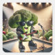 Pegatina Cuadrada Fantasy Cute Broccoli tocando guitarra