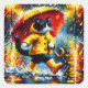 Pegatina Cuadrada Fantasy Cute Cat Boots Umbrella