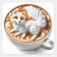 Pegatina Cuadrada Fantasy Cute Coffee Fox Cup