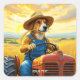 Pegatina Cuadrada Fantasy Cute Dog Tractor Straw
