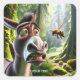Pegatina Cuadrada Fantasy Cute Donkey Sting Bee