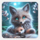 Pegatina Cuadrada Fantasy Cute Fox Holding Plushie