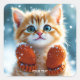 Pegatina Cuadrada Fantasy Cute Kitten Mittens Snow