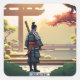 Pegatina Cuadrada Fantasy Cute Pixel Art Samurai