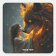 Pegatina Cuadrada Fantasy Cute Wolf Chica Fire