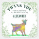 Colorful Watercolor lindo bebé cabra gracias a los bolsos de favores con follaje y vegetación, ideal para un fiesta de cumpleaños de niños, sobre todo celebraciones con temas de granja. Las palabras ‘Gracias por celebrar mi cumpleaños conmigo’ con el nombre de un niño personalizado. Tipografía moderna y divertida de color que es fácil de personalizar usando la plantilla. Pintura original de la artista Catherine Sweetman