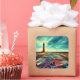 Una colorida IA generó arte con un faro abandonado, nubes, vidrios rotos en una colorida matriz en el suelo.
