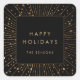 Pegatina Cuadrada Faux Gold Purpurina Sunburst Happy Holidays Square