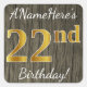 Pegatina Cuadrada Faux Wood, Faux Gold 22nd Birthday + Custom Name