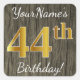 Pegatina Cuadrada Faux Wood, Faux Gold 44th Birthday + Custom Name