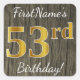 Pegatina Cuadrada Faux Wood, Faux Gold 53rd Birthday + Custom Name