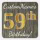 Pegatina Cuadrada Faux Wood, Faux Gold 59th Birthday + Custom Name