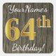 Pegatina Cuadrada Faux Wood, Faux Gold 64th Birthday + Custom Name