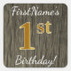 Pegatina Cuadrada Faux Wood, Faux Gold Primer cumpleaños + Nombre pe
