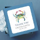 Pegatina Cuadrada Favor de agradecimiento de cangrejo azul de boda e