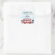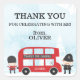 Esta es una divertida etiqueta de agradecimiento para una fiesta de cumpleaños infantil con tema de Londres, con un autobús rojo de dos pisos y otros detalles adorables. Hay un fondo abstracto de acuarela azul con imágenes de fuegos artificiales y una silueta de la ciudad de Londres en blanco. El autobús rojo tiene un banner que dice "Gracias por venir" y se puede personalizar con el nombre del niño o niña que cumple años. Se pueden utilizar en los regalos/bolsas de la fiesta, así como para sellar los sobres de las tarjetas de agradecimiento.