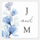 Pegatina Cuadrada Favor de boda floral azul polvoriento con monogram
