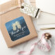 Favor de la Boda Gracias Plantilla Pegatina - Elegante Pareja de Piña Relieve metalizado dorado Faux sobre fondo de patrón de ola azul de la Marina. Un diseño perfecto para tu gran día. ¡Todo el estilo de texto, colores, tamaños se pueden modificar para adaptarlo a sus necesidades!