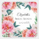 Pegatina Cuadrada Favor de Ducha de Novia de Peonías Rosadas Florale