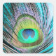 Pegatina Cuadrada Feather de pavo real sobre turquesa