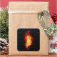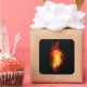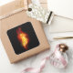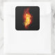 Una brillante pluma de pavo real hecha de fuego y llama sobre fondo negro.