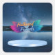 La frase "Amigos de la pluma" se representa en un vibrante paladar de colores que recuerdan a las alas de las aves: azules, verdes y amarillos. El tipo de letra es lúdico y captaz, capturando el espíritu de amistad y la belleza de las aves.