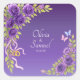 Pegatina Cuadrada Fecha + Nombres de la Novia y el Novio Flores Púrp