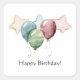 Pegatina Cuadrada Felices Estrellas de Cumpleaños y Globos
