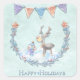 Adorable pegatinas de Happy Holidays con un conejito cálidamente vestido y su amigo reno dentro de una corona decorativa de vacaciones. Se ofrecen servilletas, embutidos y tazas que coincidan.