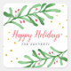 Elegante pegatina de saludos vacacionales personalizado con nombre familiar.