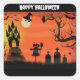 Pegatina Cuadrada Felices murciélagos de Halloween y espantapájaros