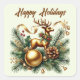 Pegatina Cuadrada Felices vacaciones, reno dorado añadir texto
