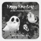 Un trío de fantasmas de ojos grandes en un cielo nocturno espeluznante decora este pegatina que puedes personalizar por ti mismo.