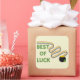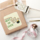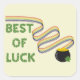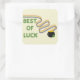 Pegatina Cuadrada Felicitación de buena suerte con tréboles y arcoír