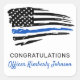 ¡Enhorabuena! Añada el toque final a su fiesta de retiro o graduación de la policía con estos pegatinas de retiro y suministros de fiestas de la delgada línea azul. Diseño de la bandera estadounidense en colores con bandera de la policía, diseño moderno. Esta feliz colección de jubilaciones de oficiales de policía de retiro será la favorita. Personalizar con el nombre de los oficiales, y el retiro feliz se puede cambiar a felicitaciones para fiesta de retiro de la policía, o fiesta de graduación de la academia de policía. Vea nuestra delgada colección de líneas azules para igualar invitaciones a la jubilación de la policía, regalos de la policía, favores del partido y suministros. DERECHOS RESERVADOS © 2020 Judy Burrows, Black Dog Art - Todos los derechos reservados. Fiesta de policía Bandera delgada de la línea azul felicita a Pegatina de la plaza