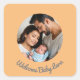 Pegatina Cuadrada Felicitaciones bebé melocotón, foto de bienvenida