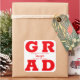 GRAD con letras rojas en negrita llena las esquinas de estos pegatinas cuadrados de grado. Felicitaciones por encima del nombre de su graduado y la Clase de abajo. VEA TODA LA COLECCIÓN de combinaciones de colores prehechas, invitaciones, placas de papel, servilletas, carteles y más en nuestra tienda.