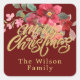 Pegatina Cuadrada Feliciz Navidad Dirección de devolución Clásico fl