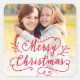 Pegatina Cuadrada Feliciz Navidad en guión rojo Foto de vacaciones