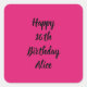 Pegatina Cuadrada Feliz 16º cumpleaños Pink Black Custom Name Girly