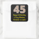 Pegatina Cuadrada Feliz 45º cumpleaños y Feliz Navidad, nombre perso
